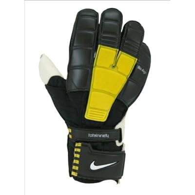 Features of the Nike Total 90 Confidence: Extended, articulated 6mm contact foam palm absorbs shot impact, enhances flexibility and grip and improves control, pre-curved Bio-Align technology positions the hands in catch-ready position and reduces stress on the hands. Full cross ventilation provides cooling airflow through the palm and back of the hand and the half-wrap wrist belt provides enhanced adjustment and security.